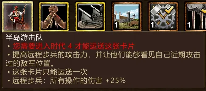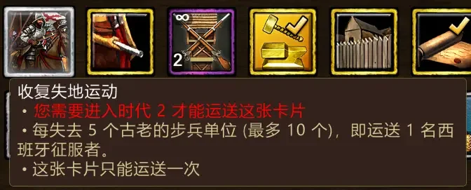 圣油膏卡片(时代2):移到时代1(译注:翻译的时间点该卡仍然在时代2);不再运送传教士;光环不再提升炮兵和舰船;光环效果4.5%→2.5%;光环范围24→34;射程环对应进行了调整(效果最大提升55.3%→28%)。