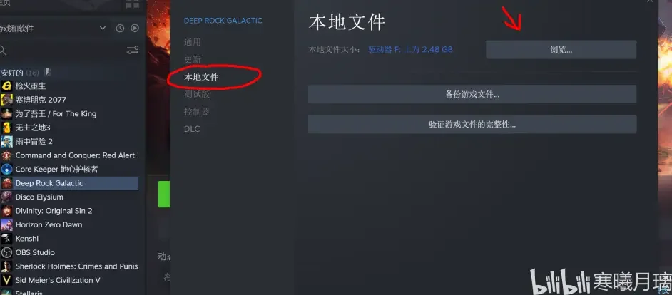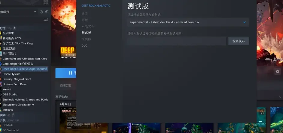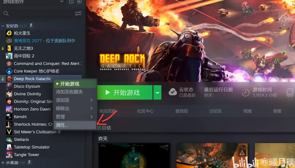 1. 与进入测试服的第一步一样(Steam - 库 - 找到Deep Rock Galatic - 右键游戏 - 选择 “属性”)