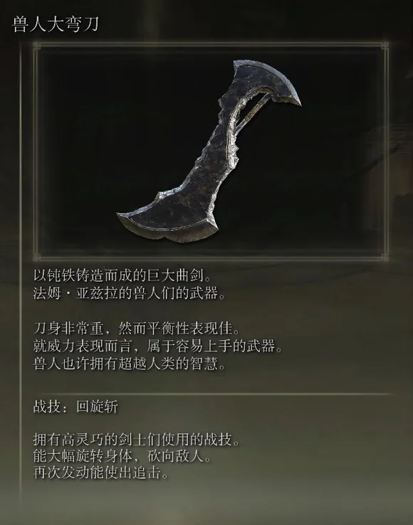 天空城兽人的大曲,拥有最优秀的近战模组之一,纯力量A补正,+25后纯物理面板居然有766