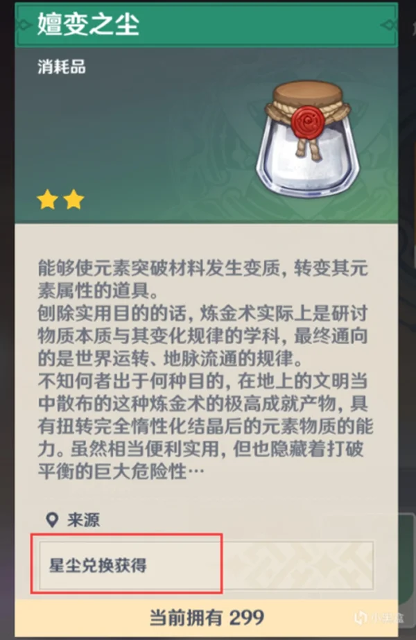 5星尘能换10个【嬗变之尘】,别换太多,星尘获得不容易