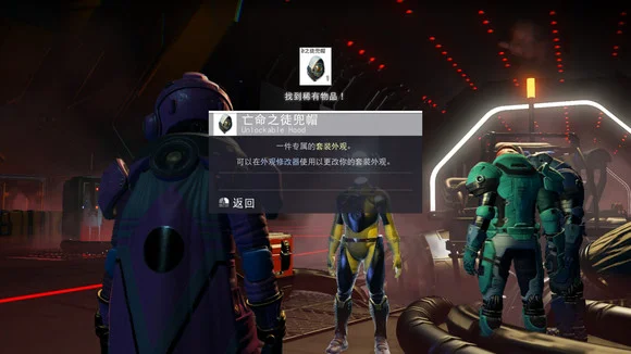 找几个人对话,获得一个装扮【亡命之徒的兜帽】。