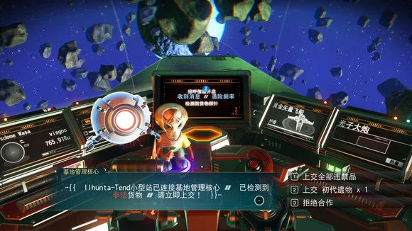 上交就会清除你背包里的违禁品,拒绝合作就会触发星际安全
