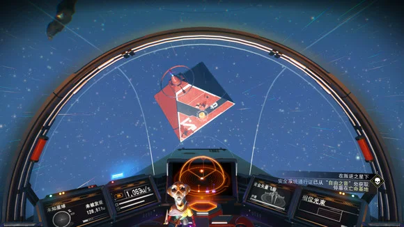 到达后获得一个会面点信标,激活后定位到太空中的一艘荒废货船。