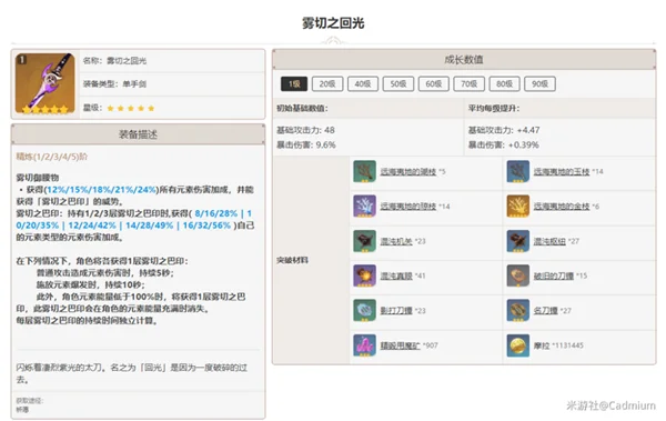 雾切之回光拥有单手剑中最高的攻击力白值(和风鹰剑持平),且副词条为好用的暴击伤害。作为神里绫华的专武,雾切之回光非常契合绫华的攻击模式,是毫无疑问最适合神里绫华的武器,且与其他武器拉开了较大差距。雾切也很适合刻晴,因此如果是练了刻晴的玩家,也可以考虑抽取一把雾切。如果是拥有满命万叶的大佬,那自然也是可以用雾切的。