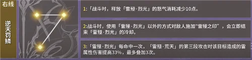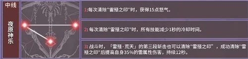 中线是【专武震离】首选线, 也是震离技能循环起来最快最流畅的一条神格线,每次清除雷印都会获得15点怒气,能够有效缓解缺怒的情况。每次减CD,加速了震离整体的技能循环和爆发节奏。