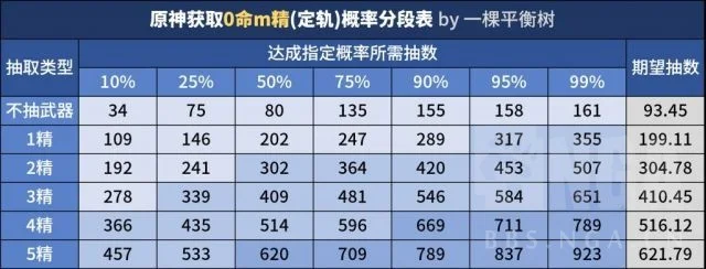 我们参考n命m精相关表和角色活动祈愿总五星数量的关系表: