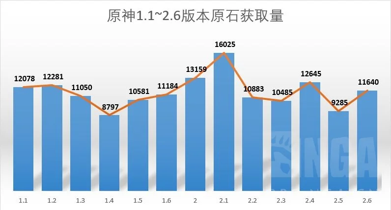 原石统计数据包含1.1-2.6版本(共13个版本),不包含开服版本