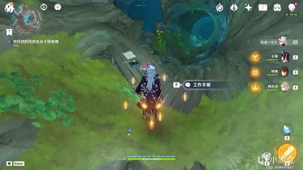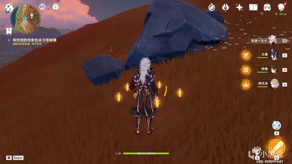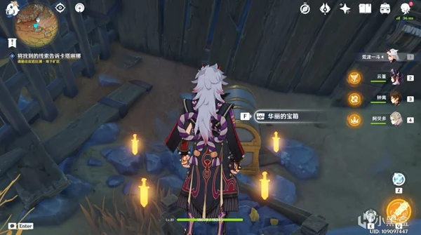 之前不小心做了。。在两个石头之前有一个摩拉箱,点击即可触发剧情,完成任务后即可获得成就。