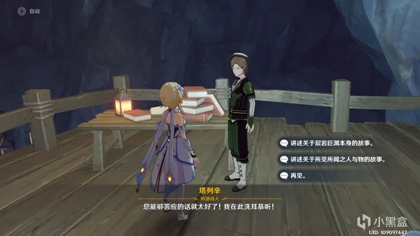 将全部故事讲给塔列辛听,没错一个一个点,最好将其余的支线全部做完再完成这个任务,否则可能完成不了。