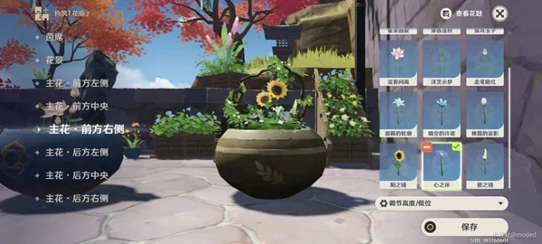 上述的花材选取步骤都选完后,点保存按钮即可完成盆景摆放任务