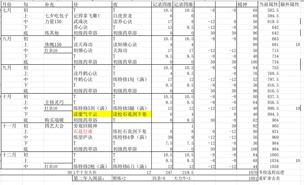 但有个有趣的一点,就是第三年年初的精神是继承你第二年最后一回合,所以记得第二年最后一回合泡澡,这样就不会浪费了月初锻炼回合。