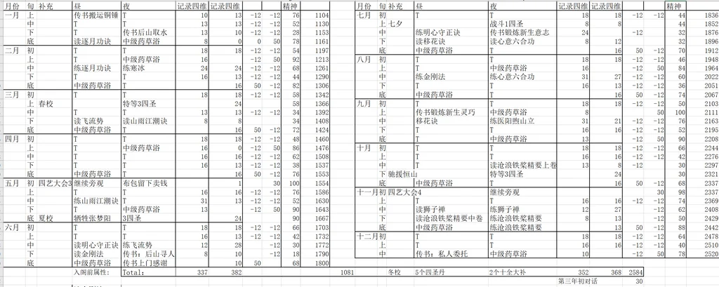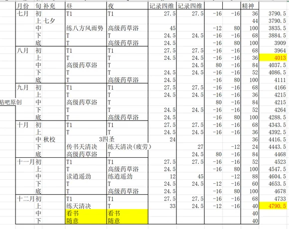 月底泡一次澡,可以有2次用在锻炼基本功,一次用在武功或者心法上。