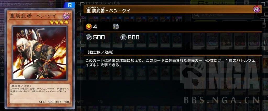 这套卡组核心就是重装武士,效果就是他装备了多少装备卡就能打多少次: