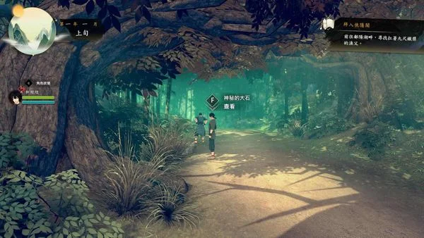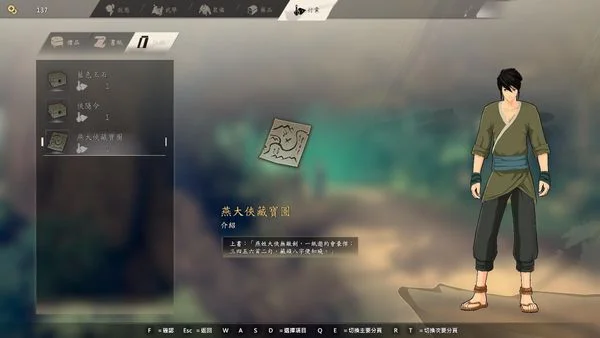 游戏一开始要搭船去侠隐阁前的树林路左边的石头会新增一个物品"燕大侠藏宝图"