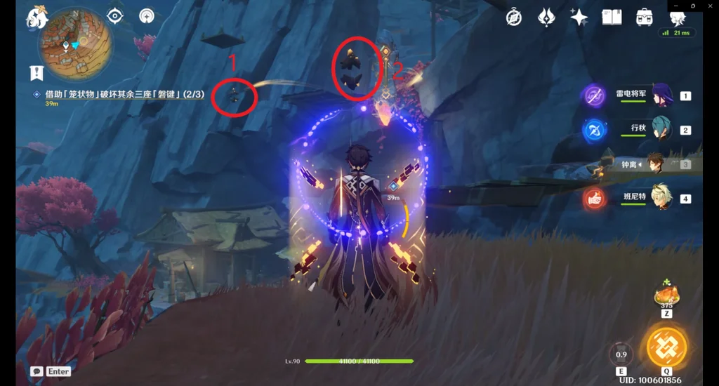破坏第一处的「磐键」后可以使用跳跃平台(红圈)出去并前往第二处「磐键」方向(根据任务指示)