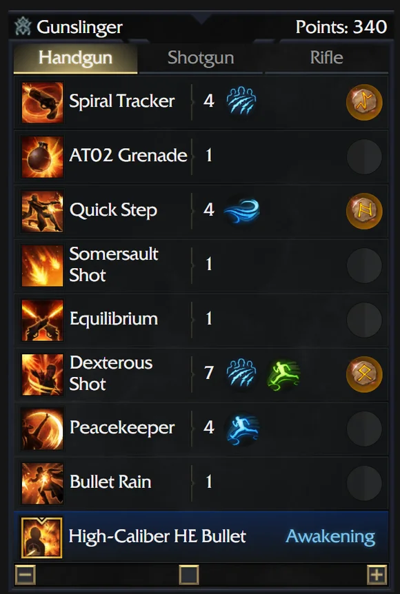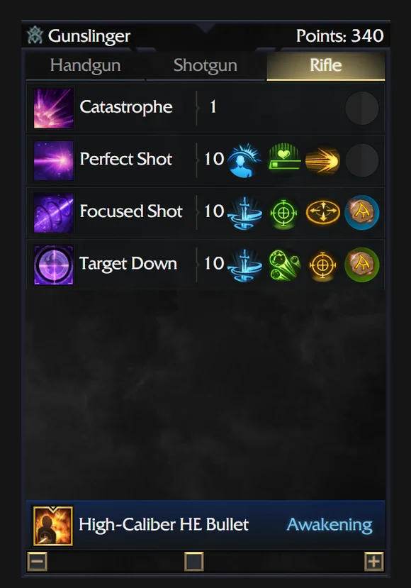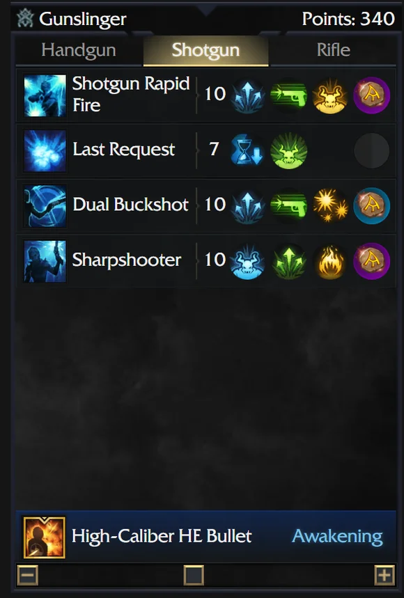 截图取自maxroll。它的女枪build攻略有个非常直观的加点UI,翻到Raid Skill Build就能看到。拖动下面的进度条可以调整技能点数量。我不太喜欢完美射击(那个蓄力的技能。直译的,不知道汉化是啥),因为它伤害实在是有点低,我还经常按岔,所以我会把last request(一发入魂的霰弹枪)点到10级,点第三行左边的double shot,让它可以打出双倍的stagger(虚弱?)和weakpoint(弱点?部位破坏?),单刷光暗狼时候很好用,一个double shot加一个道具手雷可以直接打断它的转圈。