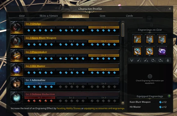 4*3+1的话推荐 怨恨/精气吸收3,钝器3,侧击3,三枪职业3,肾上腺素1。注意现在达成这个铭刻只有一种可能,就是两个12点战斗铭刻书,和身上5件3级三枪+3级战斗铭刻的首饰,和一个至少6+5的能力石。