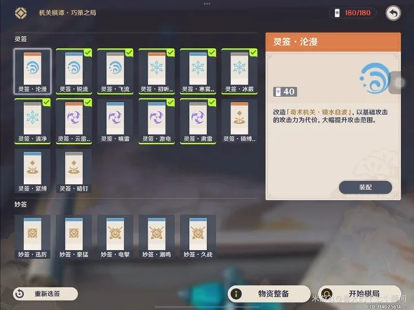 首先,来看我选的灵签,这里我主要强化了冰、雷、水机关的能力。