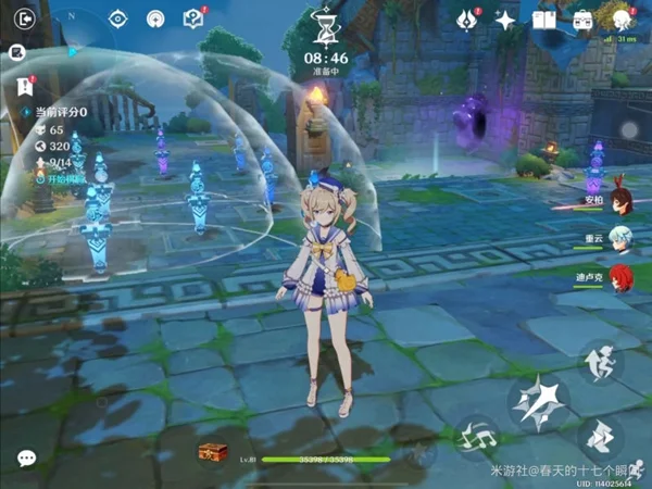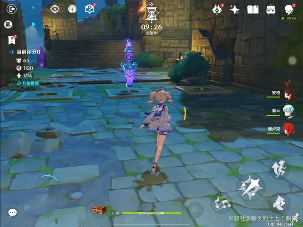 人物方面,由于需要破冰盾和挂水,所以我带了芭芭拉、安柏和迪老爷。