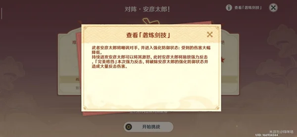 持续进攻安彦太郎可以将其激怒,此时安彦太郎将施放强力反击,「完美格挡」本次强力反击,将破除安彦太郎的强化防御状态并造成大量反击伤害。