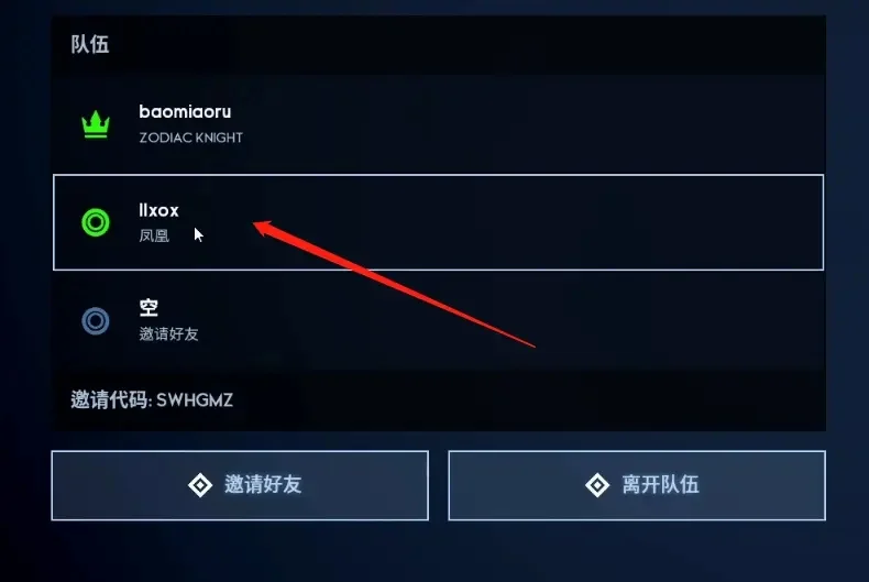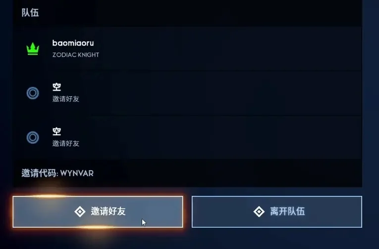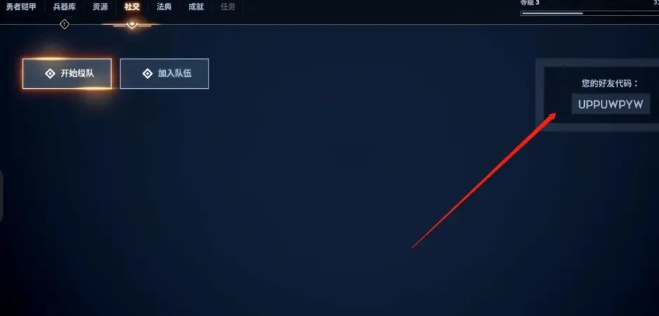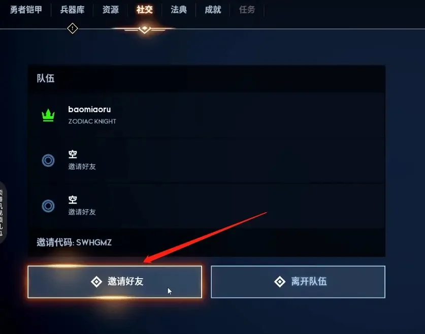 2、输入好友的邀请代码,点击加入队伍