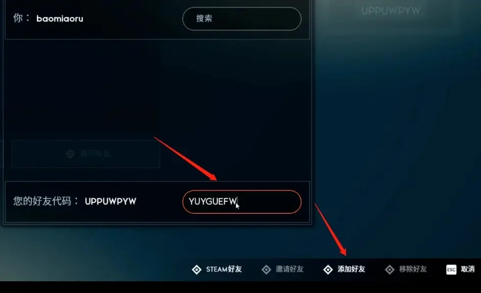 Steam平台,通过好友代码添加epic好友加入队伍(你的好友不用输入代码同意邀请即可加入队伍)