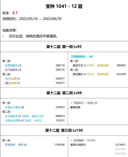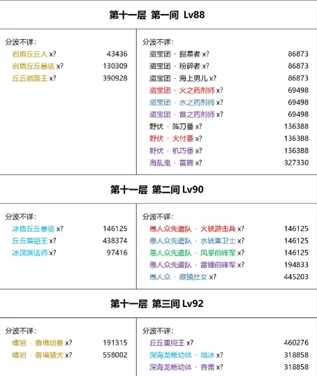 以上就是2.7版本11层和12层的深渊怪物分布和血量。