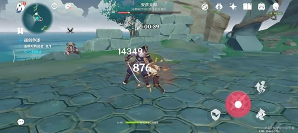 我们第一个来看:安意太郎,楼主的小妙招就是在他抬刀到头顶时,我们数一,然后按下格挡按钮,就可以很容易触发,就是要控制好节奏,80%的机率是会触发的。