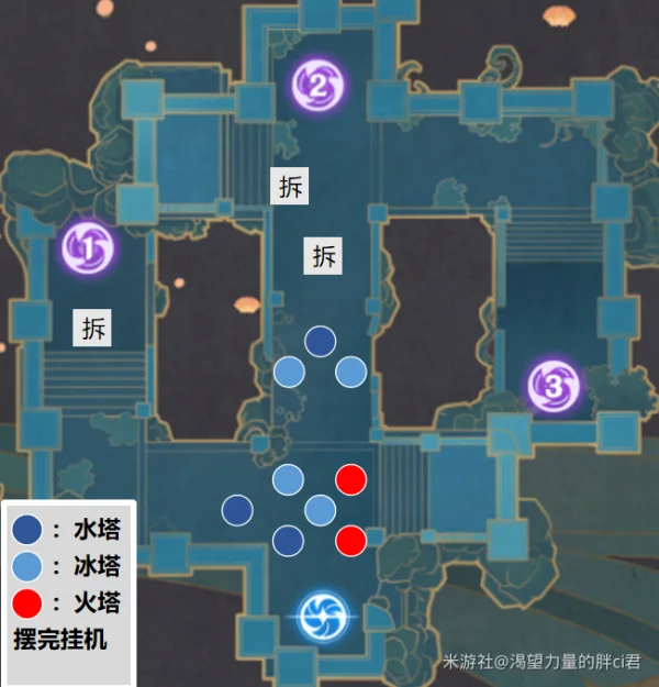 (想满分可以自己带火系角色,然后攻略的火塔换水塔)