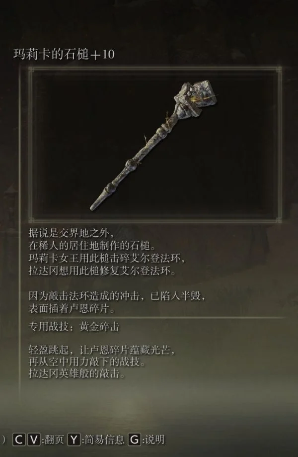 换个语序来说,黑刀刺客和玛丽卡类似,都是稀人,稀人也是个种族,在我们捏脸时可选,之后再来看玛丽卡锤子的物品描述。