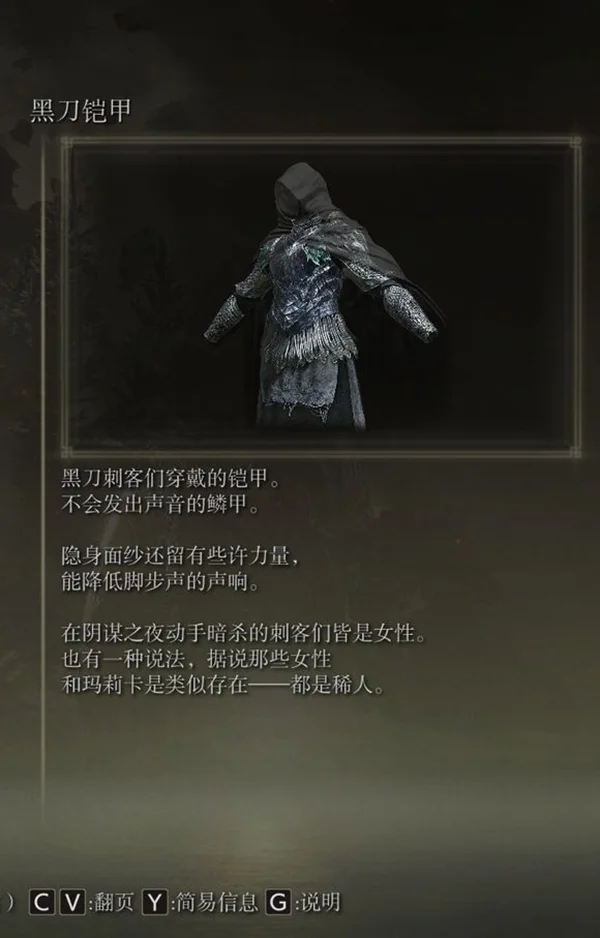 从黑刀套装我们可以得知,黑刀刺客们是希人,类似于玛丽卡的存在,我不明白这里为什么要用类似于玛丽卡这么形容,这是英文版描述。