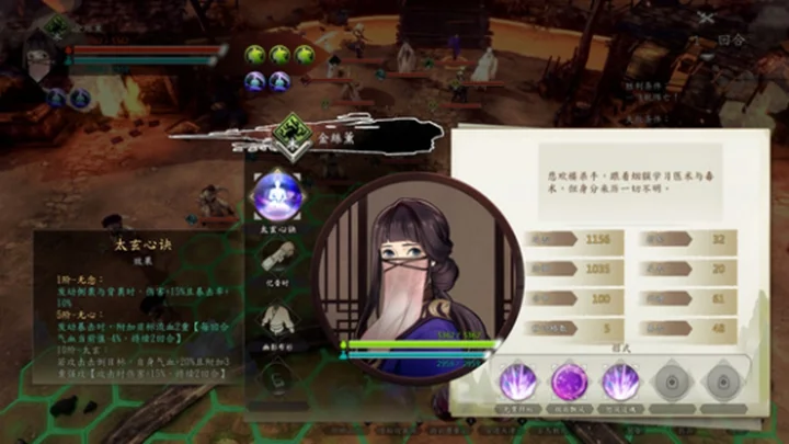 唯一亮点就是武器,攻击时吸取10%伤害回复自身气血;若目标持有状态噬心夺魂则附加气滞【无法运行心法,持续2回合】