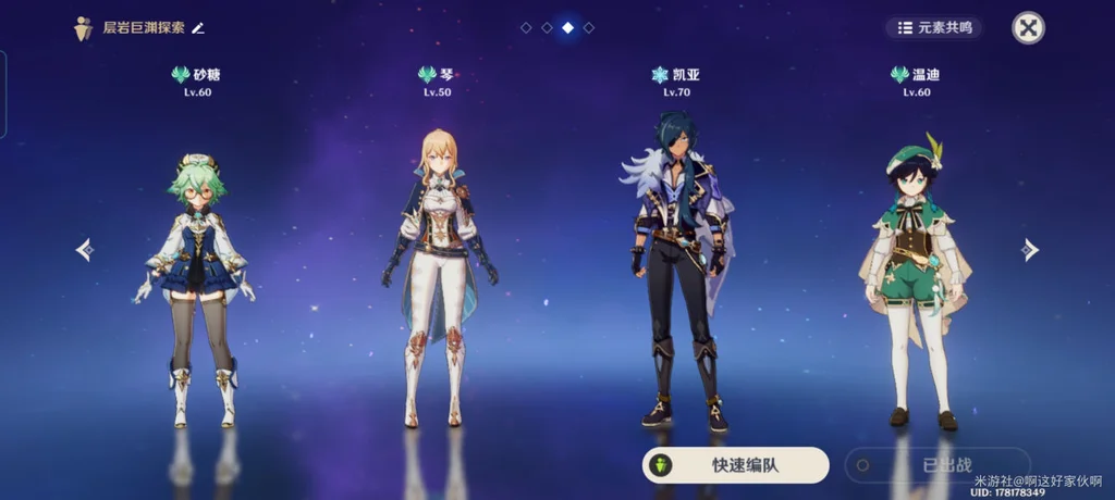 选择凯亚的原因是,第一天的怪物里有水深渊法师,用冰系角色比较容易克制,而凯亚普及度很高,几乎人人都有,而且他的元素战技cd较短,当然,有甘雨、绫华的小伙伴也可用啦
