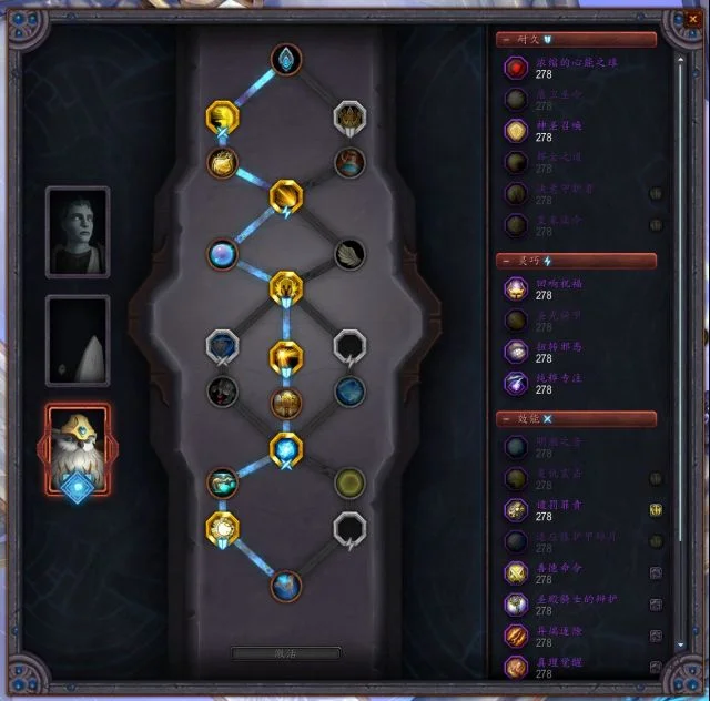 通灵:高圣能获取,同样的配装循环下可打出大量额外的圣令和盾击,强大的抗高压自疗循环能力