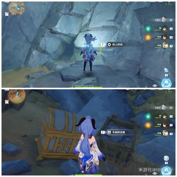 过去后按照指引点击“向上移动”,即可传送至华丽宝箱处。