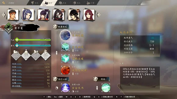 四阶特性开启强跃龙门,别被特性的高损失(1000真气消耗,受伤翻倍,每回合损失30%真气)吓到,净开这个特性就想过留强敌活着,这个招式又前面说过的停一回合换来的专迅强三重BUFF固然好,没有也可以直接无脑背刺。利用无视ZOC的特性,直接绕敌背后,一剑3000~6000,简单粗暴带走对手,如果有三重BUFF加成则可以利用特定招式连击两下,谁都扛不住的那种。