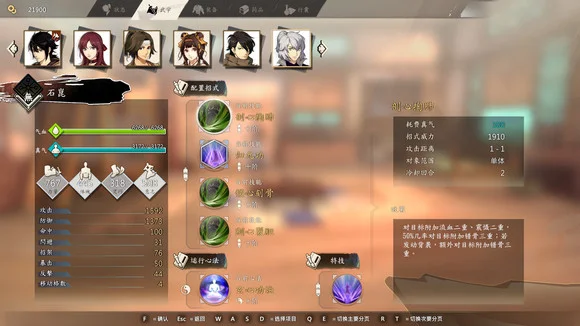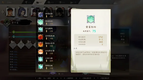 五阶强化黄雀衔环,因为面板问题基本是被淘汰招式,但这个早期的清所有DEBUFF真是太香了。依年旧时月的特性加成更是能把死亡边缘的角色直接一口气调回来。