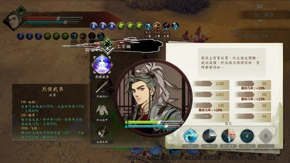 五阶提升增加连空灭明(两格环形大范围AOE技能,高伤,带灼烧)和孤舟寒雪(进阶版五老棍法的钓鱼,另外四阶额外送了进阶的五老棍法),战斗力提升极其明显,上官的每次升级顺带初始技能都会有性质变化,开始带高层灼烧,但是总的来说上官的初始技能是拿自己的血换伤害,如果装备不行外加敌人属于暴击流,那就很容易翻车。五老棍的进阶给了不一样的思路,在最终战其实可以就留下三招进阶五老棍和连空灭明。当然,上官自己的七阶剧情因为回和大量北焰卫配合,所以用初始的点燃技能反而有奇效。