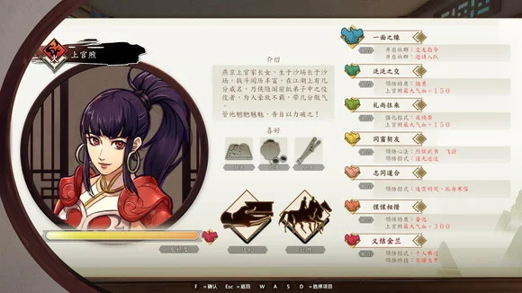 3.目标是五月前萧六阶好感(五月上旬占一天抢亲),五月底之前石七阶好感(过后交友会关闭),七月上旬前完成一位恋人的好感(要拿礼物),十月上旬前全好感七阶(程镛和段其中一个的7阶可以留到十月上完成凑最后一次)。注意十月上旬的礼物为:蕉叶琴、高山流水琴谱、官子谱、端砚、两个普通颜料、两份酒、一个古董瓶、三把武器配件、一份茶、一把伞、一份大花,这样算下来,十月下旬后还可以补友好度的为净、程镛、段红儿、上官煦、南飞锽、钟若昕、武辙、萧芊菱。伞只能送程、花只能送钟、书法只能送南。木人心营救需要程六阶。
