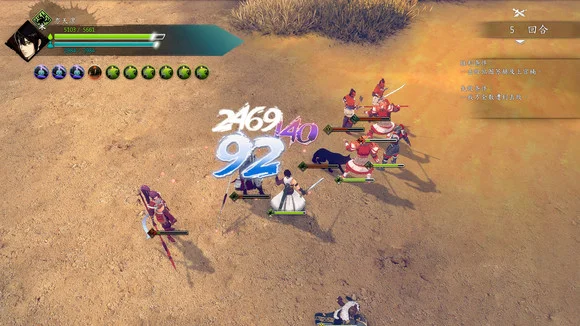 这里说一下七阶的战斗,这场战斗推荐学姐换回初始招式,因为自带灼烧,上官楠在敌人阵型最后方,本身具有多次被攻击后叠招架的特性,所以不要让北焰卫士兵给他刮痧,要利用飞蛾扑火和引燃招式,靠隔山打牛的方式给他叠高层灼烧BUFF,然后让主角重拳出击。我的主角没学灼烧相关技能,也没有让上官师姐碰他的情况下,靠我方杂兵的热传导,成功给上官楠叠了5层灼烧,然后北主角一剑平A2400的伤害。