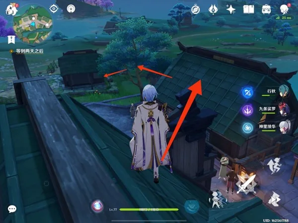 我们需要等他走远一点之后(任务刚开始就跑上去很容易被发现),再爬到左边的屋顶上。
