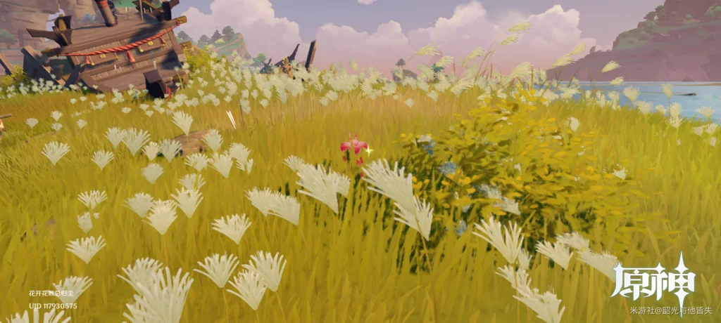 首先来到鸣神大社的传送锚点,在锚点的前方有两个特产(应该不会有人提前收了吧)分别是绣球和鸣草