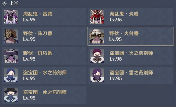 上半:由两只海乱鬼、3个野伏众和11个盗宝团药剂师构成。站位较为分散,推荐带具有聚怪能力的角色。