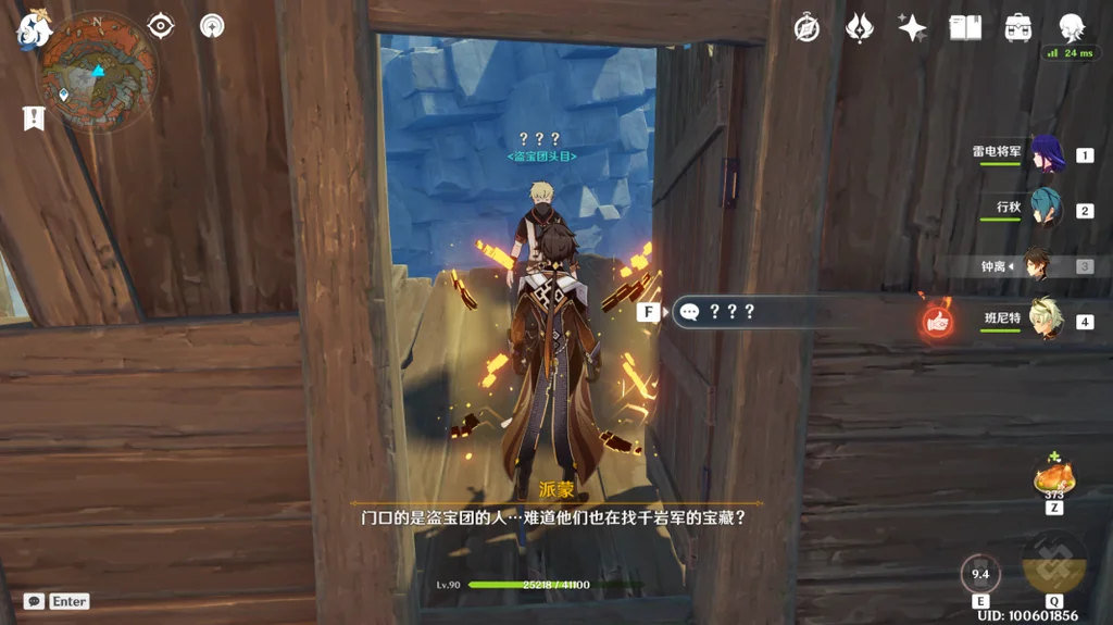 拾取到「庇佑之冠」后门口会出现敲门声(被吓了一跳)开门后对话并击败盗宝团头目即可