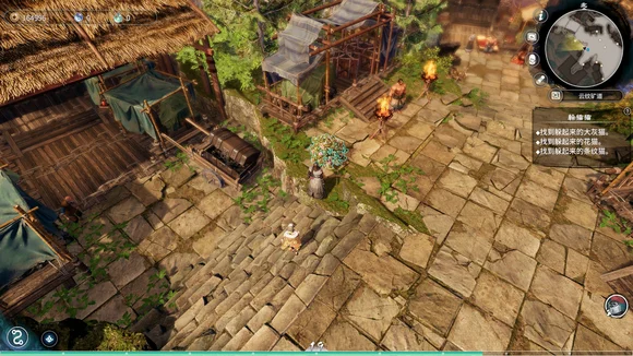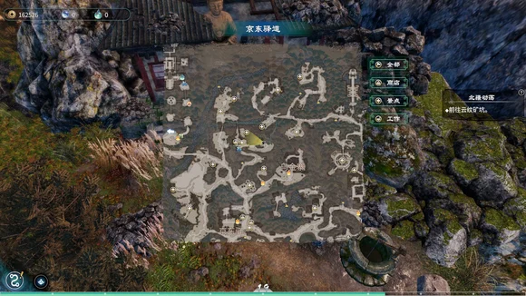 16. 与京北驿中陈大男对话,触发传闻。出京北驿,门口有一颗可以互动的树,先点燃再运劲即可获得带有弹力的绳圈。回去交给陈大男,获得藏宝图1。在道具栏中使用藏宝图,得知位置。如图所示: