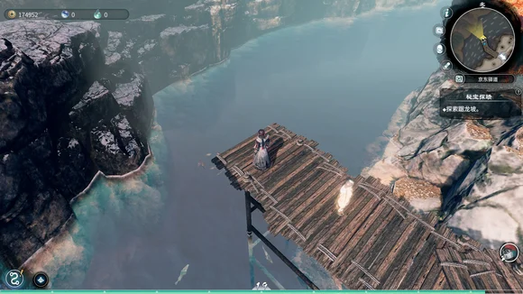 藏宝图2所示地点在狼背崖,从矿坑内部出来自动到达,可顺带探索,在如图所示的位置钓鱼即可获得湖中宝箱,打开宝箱获得残页上篇
