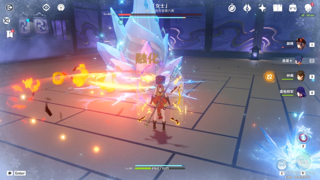 在【女士】冰火转换阶段,此处好兄弟们不能像往常一样拾取红莲蛾,而是需要通过火系或其他能破冰盾的角色来击碎坚冰,最后干掉【女士】即可完成成就。
