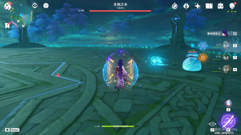 首先来到无相之水处,激活无相之水后,会出现两只“水滴史莱姆”,我们的目标就是下图所示的浅蓝色水滴,然后吃掉三颗水滴发射的“愈疗晶球”即可达成成就。