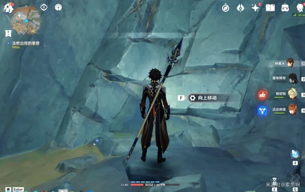 不过是真的难爬,我爬不上,所以我找了个简单的方法就是爬到下图所示的石壁上,就能见到的飞下去啦