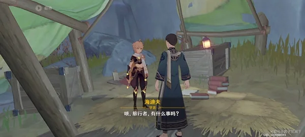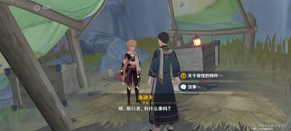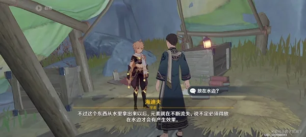 得到这个奇怪的物件,之后,回到营地去询问海迪夫,然后他会告诉我们,把这个物件放到水边去试一下